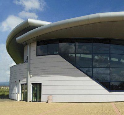 [ Bardage ventilé en verre, finition spéciale, et enduit sur bardage ]